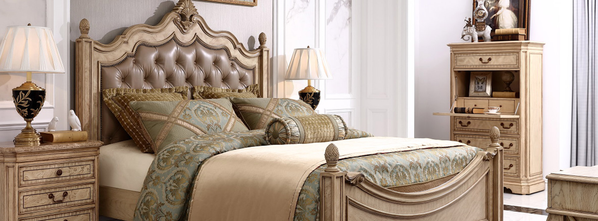 以巴黎的唯美愛情故事為背景,使用旋渦狀床板設(shè)計(jì),加上高檔的水曲柳樹瘤和白橡木皮,再用優(yōu)雅白配色與帶仿古效果的色澤痕跡點(diǎn)綴,并飾以低調(diào)舒適的進(jìn)口牛皮面料,充分彰顯了古典奢華與現(xiàn)代美學(xué)的結(jié)合,精彩演繹了法國人對(duì)奢華絢麗的寵愛。